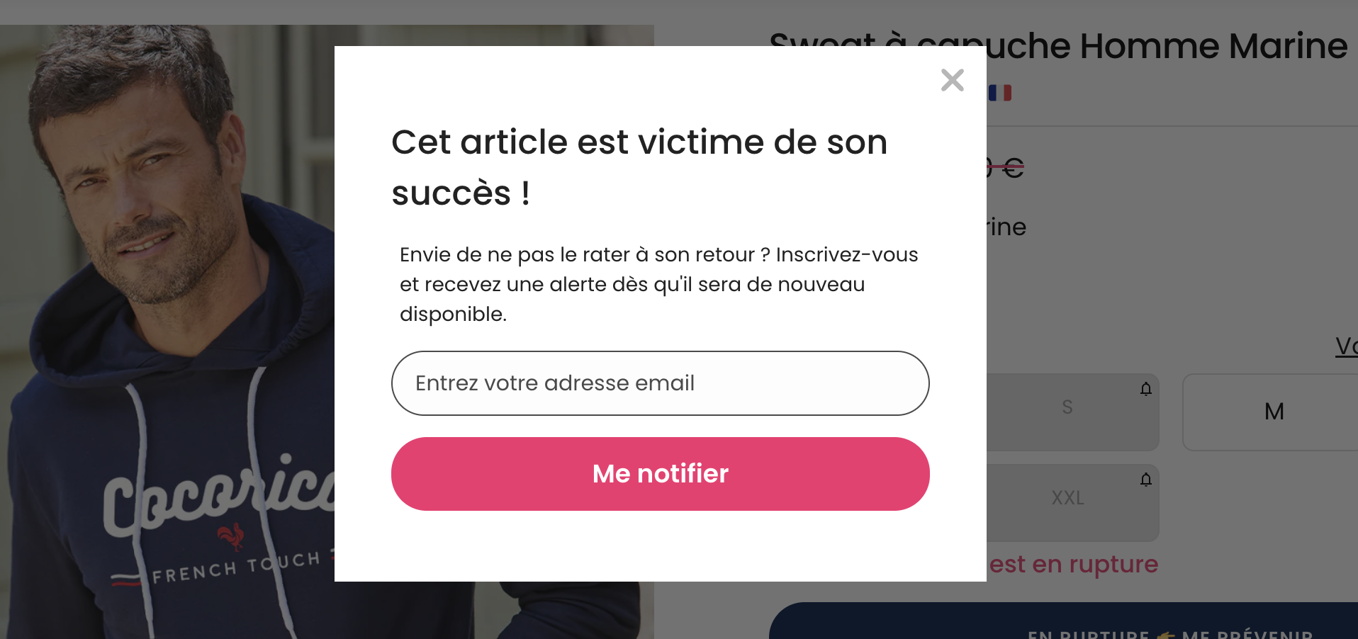 Si votre produit favori est en rupture de stock, aucun souci ! Vous pouvez vous abonner et créer une alerte sur la fiche produit concernée. Cliquez sur 'En rupture 👉 me prévenir' et insérez votre email.