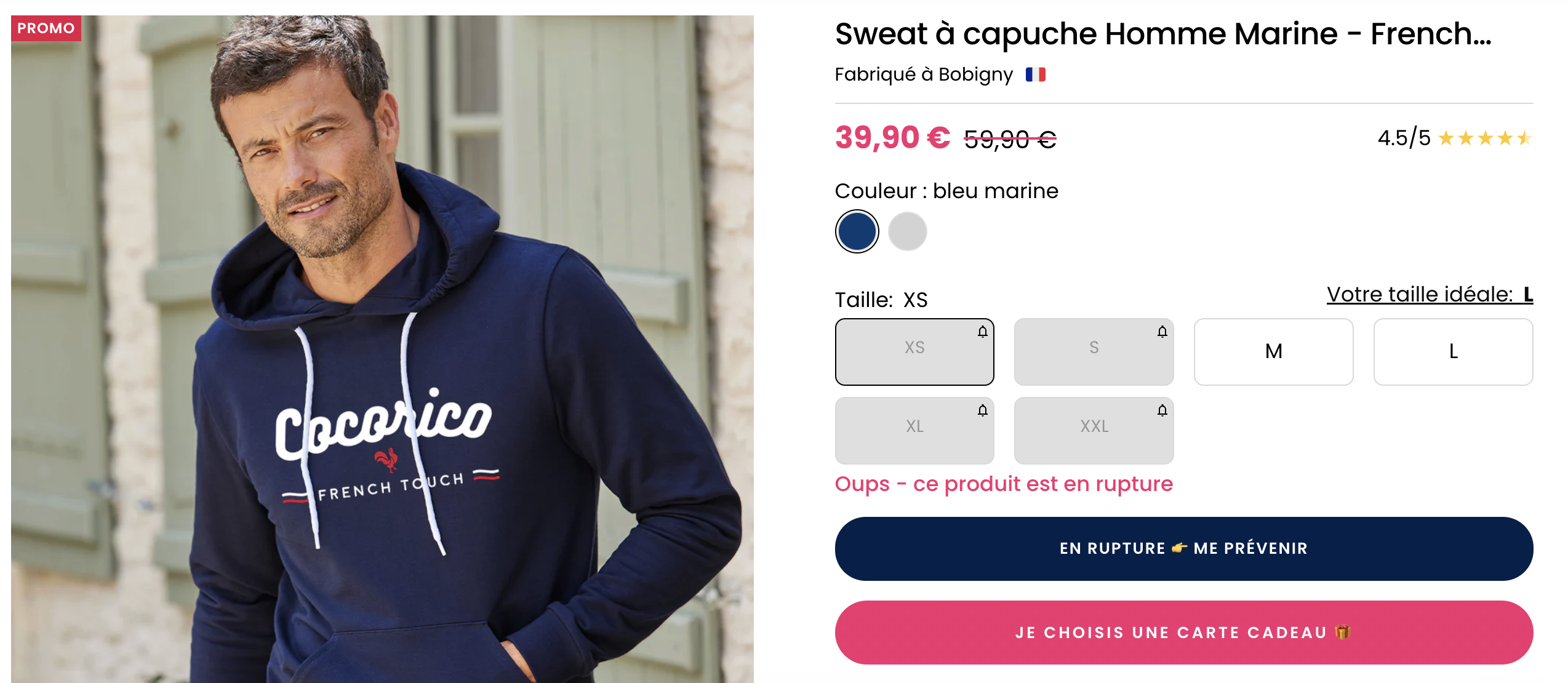 Il se peut donc que le produit que vous souhaitez commander soit en rupture de stock sur la taille souhaitée.